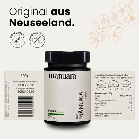 Premium Manuka-Honig MGO 400+ im lichtundurchlässigen Glas