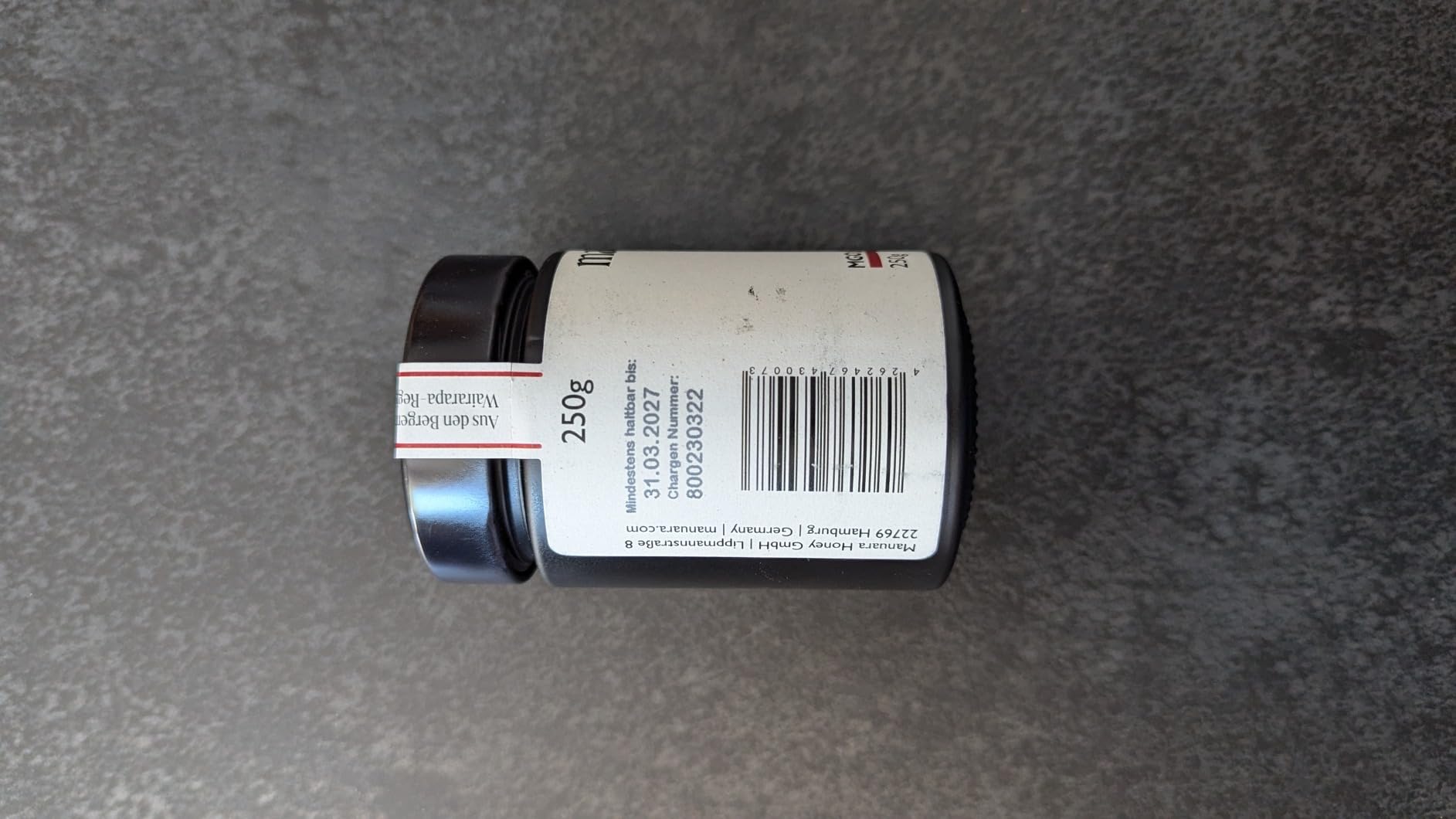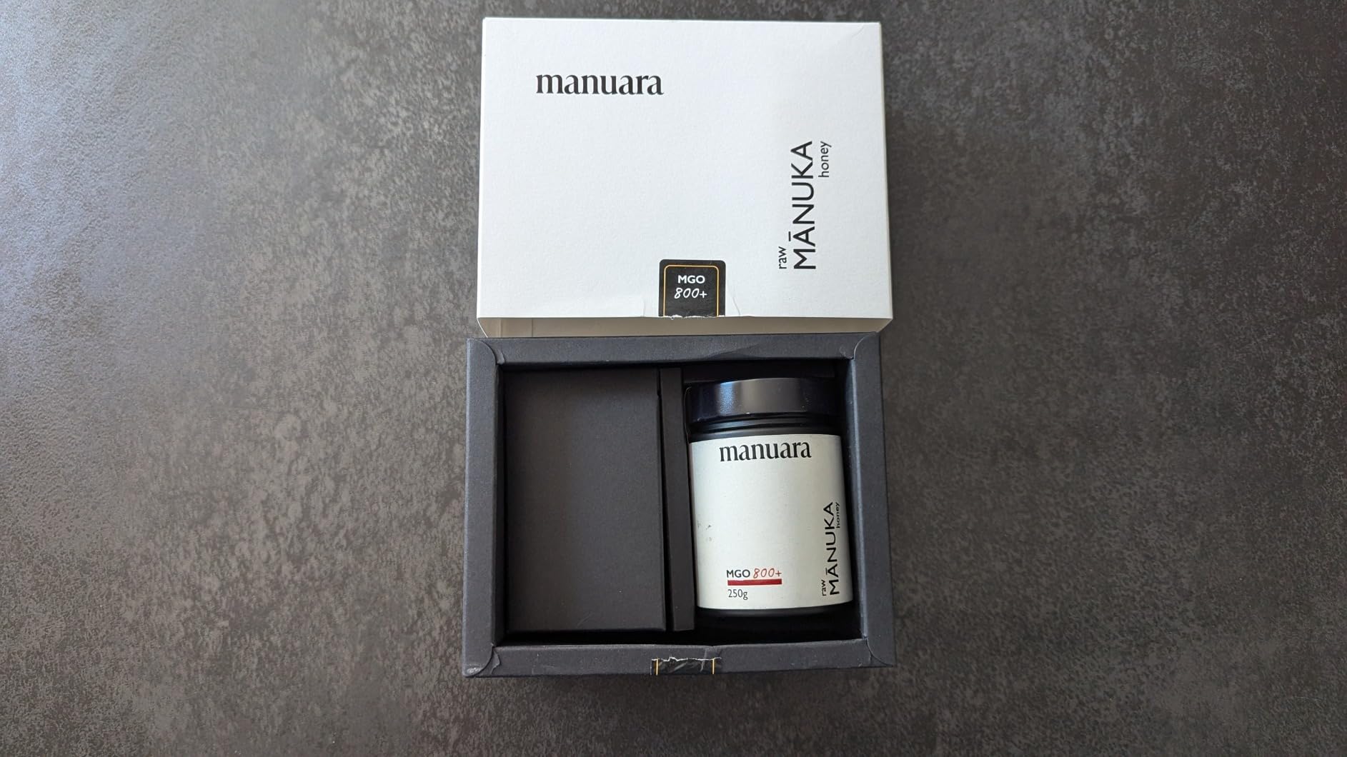 Der Manuka Honig gilt schon seit langem als Naturheilmittel, die antibakteriellen Eigenschaften werden dabei durch den Methylglyoxal-Gehalt definiert, welche bis 100-mal höher ist als im heimischen Honig. Der Manuka Honig von manuara stammt aus der schönen Wairarapa-Region in Neuseeland.Der Methylglyoxal-Gehalt wird bei diesem Manuka Honig mit mindestens 250 mg/kg angegeben und bewegt sich im mittleren Bereich. Entscheidend ist aber auch der Geschmack, welcher zwar süß ist aber nicht annährend so süß wie heimischer Honig. Zudem schmeckt man immer eine leicht medizinische herbe Note, welche aber nur beim puren Probieren auffällt. Für mich ist es der zweite Manuka Honig den ich gegessen habe. Mein Gefühl ist, dass der Geschmack stark vom Methylglyoxal-Gehalt abhängt. Je höher dieser ist, desto strenger schmeckt der Honig. Geliefert wird der Honig in einem schwarzen Glas, welches nicht nur Besonders aussieht, sondern auch die Inhaltsstoffe schützen soll. Die Haltbarkeit ist bis zum 31.03.2028 auf dem Glas aufgedruckt, also gute 4 Jahre.Aus medizinischen Gründen kann ich den Manuka Honig vollsten empfehlen, sei es nur zur Unterstützung bei einer Erkältung oder bei andere Entzündungen im Körper. Geschmacklich ist dieser Manuka Honig aus Neuseeland gut.